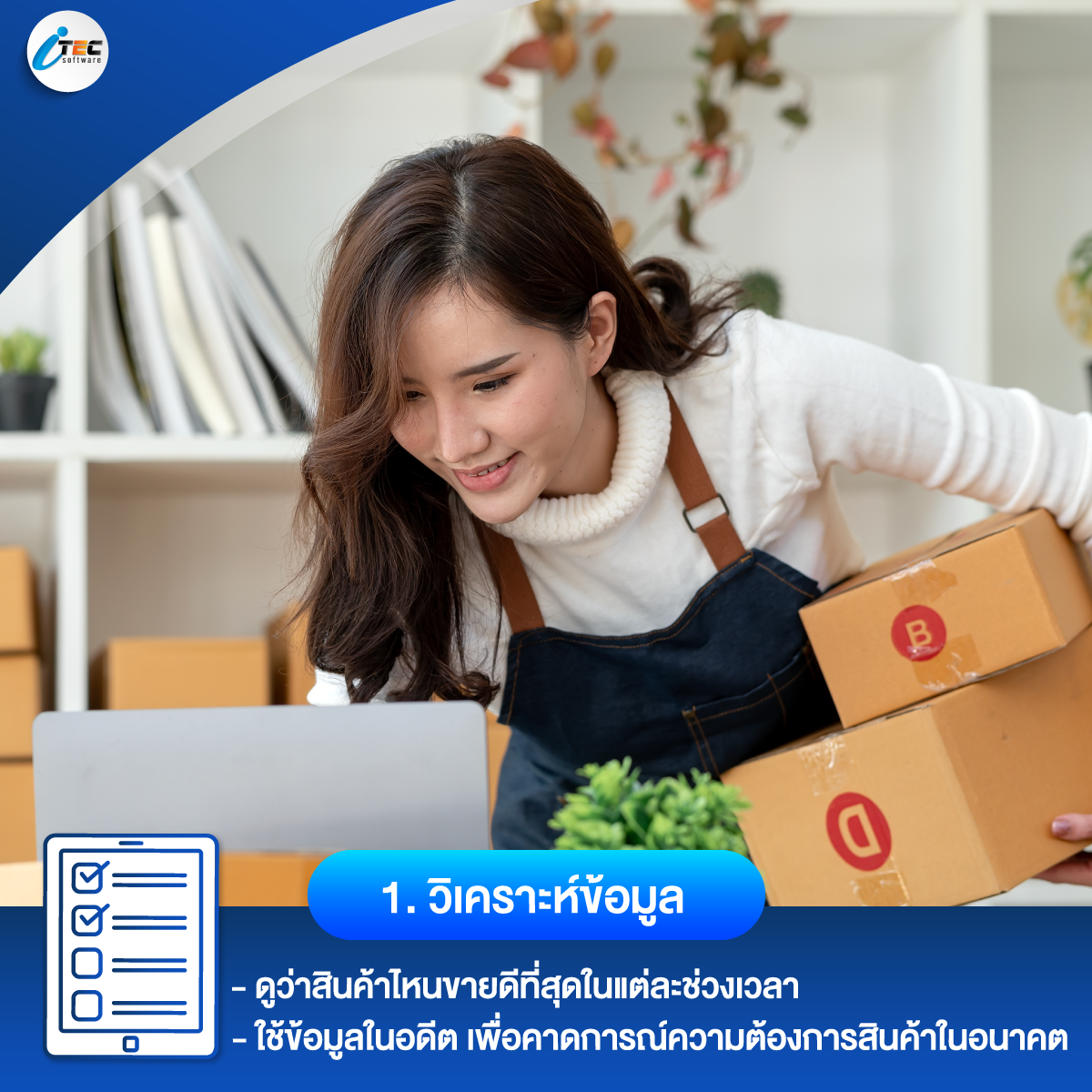 1.2 คาดการณ์ความต้องการ : ใช้ข้อมูลในอดีต ร่วมกับปัจจัยภายนอก เช่น แนวโน้มตลาด ฤดูกาล โปรโมชั่น หรือแคมเปญโฆษณา เพื่อคาดการณ์ความต้องการสินค้าในอนาคตให้แม่นยำที่สุด ซึ่งจะช่วยให้คุณสั่งซื้อสินค้าได้ถูกจำนวน ไม่มากไป ไม่น้อยไป