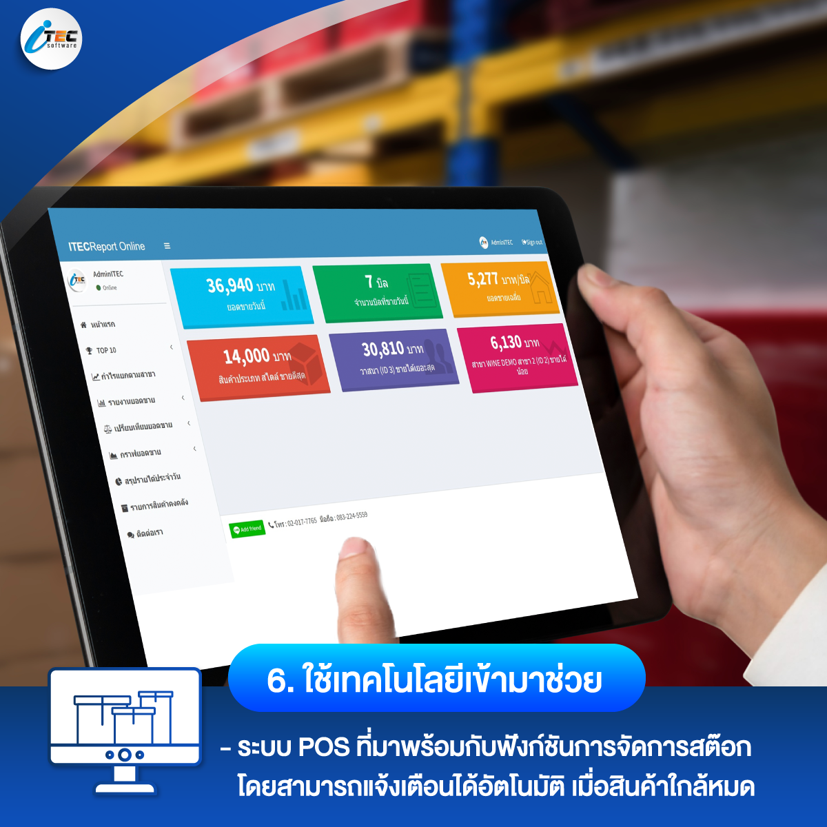6.1 ระบบ POS : ที่มาพร้อมกับฟังก์ชันการจัดการสต๊อก ช่วยให้คุณวิเคราะห์ยอดขาย และสต๊อกได้ง่ายและรวดเร็ว อีกทั้งโปรแกรมยังสามารถบันทึกการขาย ตัดสต็อก ดูรายงาน ตรวจสอบ และตั้งค่าการแจ้งเตือนสต๊อกขั้นต่ำ โดยใช้ระบบจัดการสต็อกที่สามารถแจ้งเตือนได้อัตโนมัติเมื่อสินค้าใกล้หมด ทำให้การตัดสินใจมีประสิทธิภาพมากขึ้น
