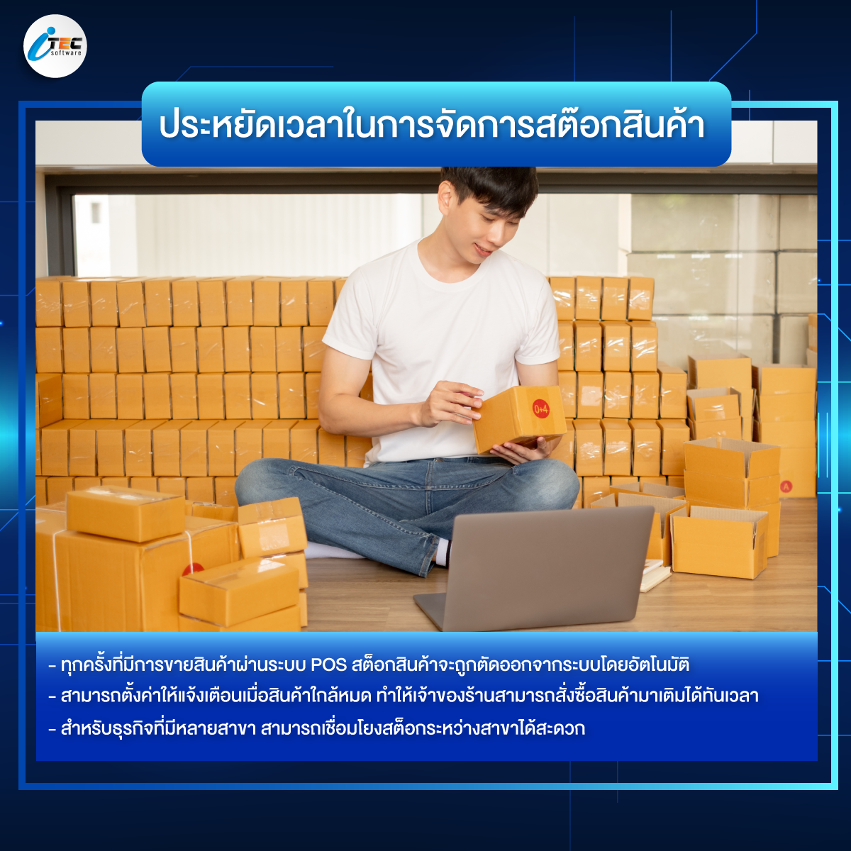 2. ประหยัดเวลาในการจัดการสต็อกสินค้า : ทุกครั้งที่มีการขายสินค้าผ่าน POS สต็อกสินค้าจะถูกตัดออกจากระบบโดยอัตโนมัติ ทำให้ไม่ต้องเสียเวลาในการนับสต็อกด้วยมือ หรือคีย์ข้อมูลสต็อกเข้า-ออกเอง และระบบยังตั้งค่าให้แจ้งเตือนเมื่อสินค้าใกล้หมด ทำให้เจ้าของร้านสามารถสั่งซื้อสินค้ามาเติมได้ทันเวลา โดยไม่ต้องเสียเวลามาคอยเช็คสต็อกเองบ่อยๆ
